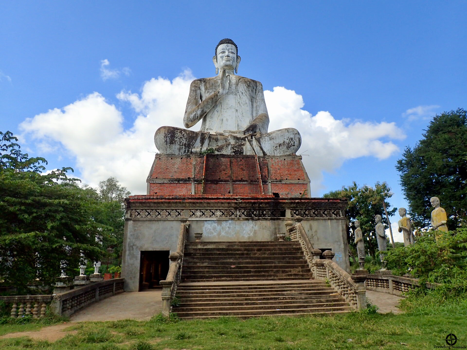 Alquilamos dos scooters y nos fuimos en busca de un Wat construido en 1027. Al llegar, las ruinas del Wat, que consta de varios prasats (templos) conectados por una plataforma, nos ofreció la visión de nuestra próxima visita a Siem Reap. Los frescos del otro wat (el moderno) y el Buda gigante, nos sacaron varios high-five.