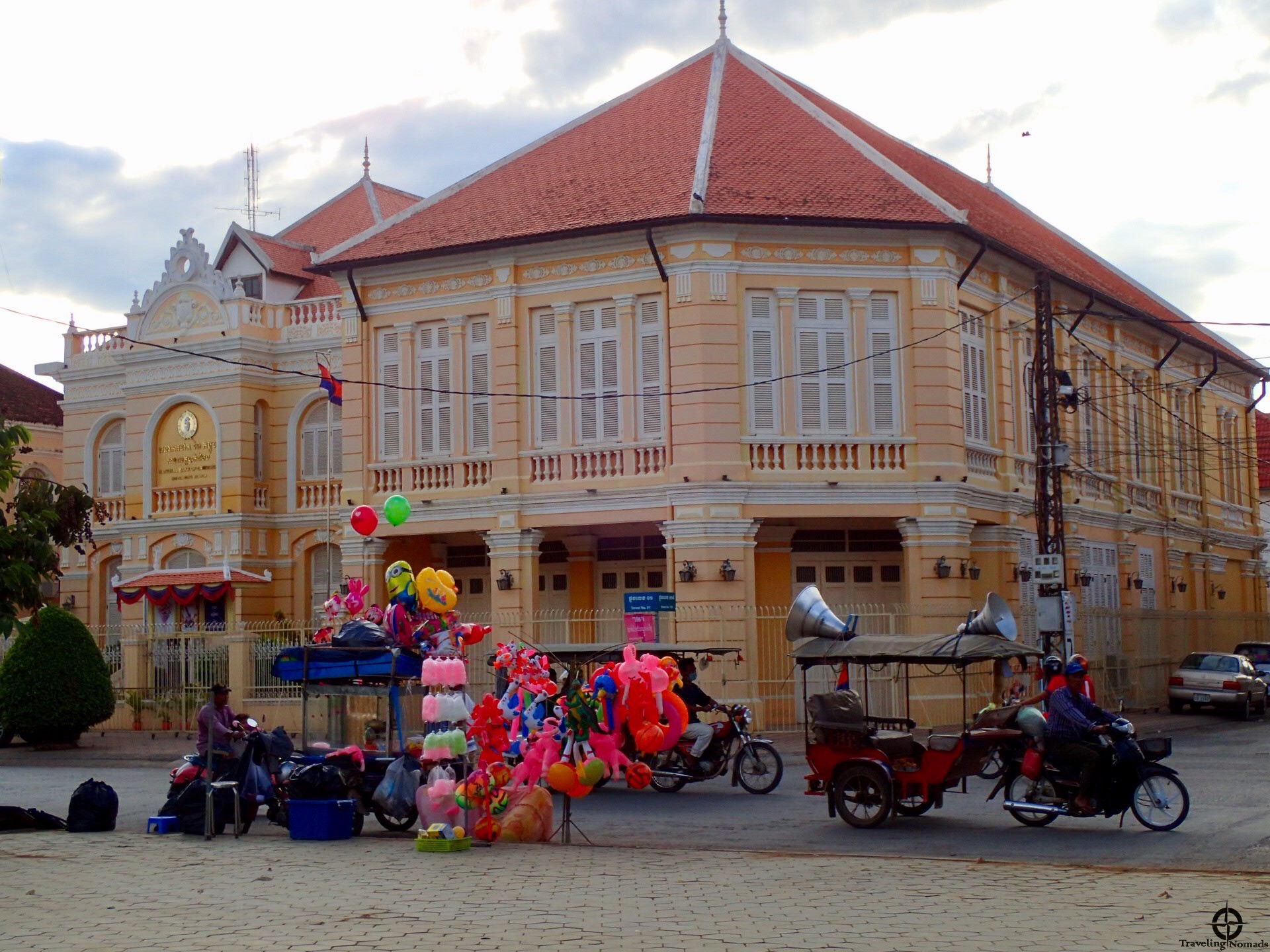 Aún si Battambang es la segunda ciudad más poblada de Camboya, esto no se nota. En la calle no se ve mucha gente acelerando el paso para llegar al punto B. Aquí, hay que caminar al ritmo de UB40 enviando los “hello” a los habitantes y teniendo como cómplice, los sonidos del río. Por otra parte, es casi imposible no dejarse seducir por la multitud de actividades ofrecidas por los conductores de tuk-tuks. Pero bueno! Como representantes oficiales del DYS, una combinación de los dos procesos no nos dejará sin el gusto a la aventura.