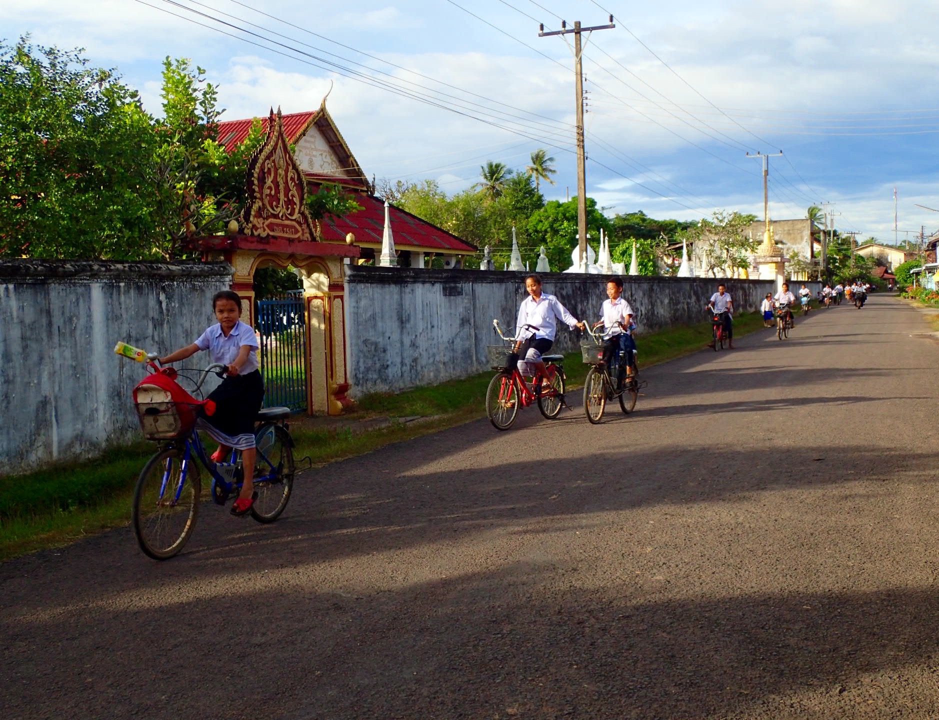 Si vous êtes une toupie en manque de tornades pour balayer votre corps dans le vent, ce n’est pas le village pour vous. À Champasak, l’attraction principale ce sont les écoliers revenant à la maison sur des vélos trop grands pour leurs jambes. Nous avons regardé le spectacle en sirotant un café servi par la madame qui vendait son délicieux pain et qui faisait aussi les photocopies pour les villageois. Bien sûr, vous pouvez aller à l’autre café hip, touristique et branché de la place, mais dans celui-là, vous manquerez la vibe locale.