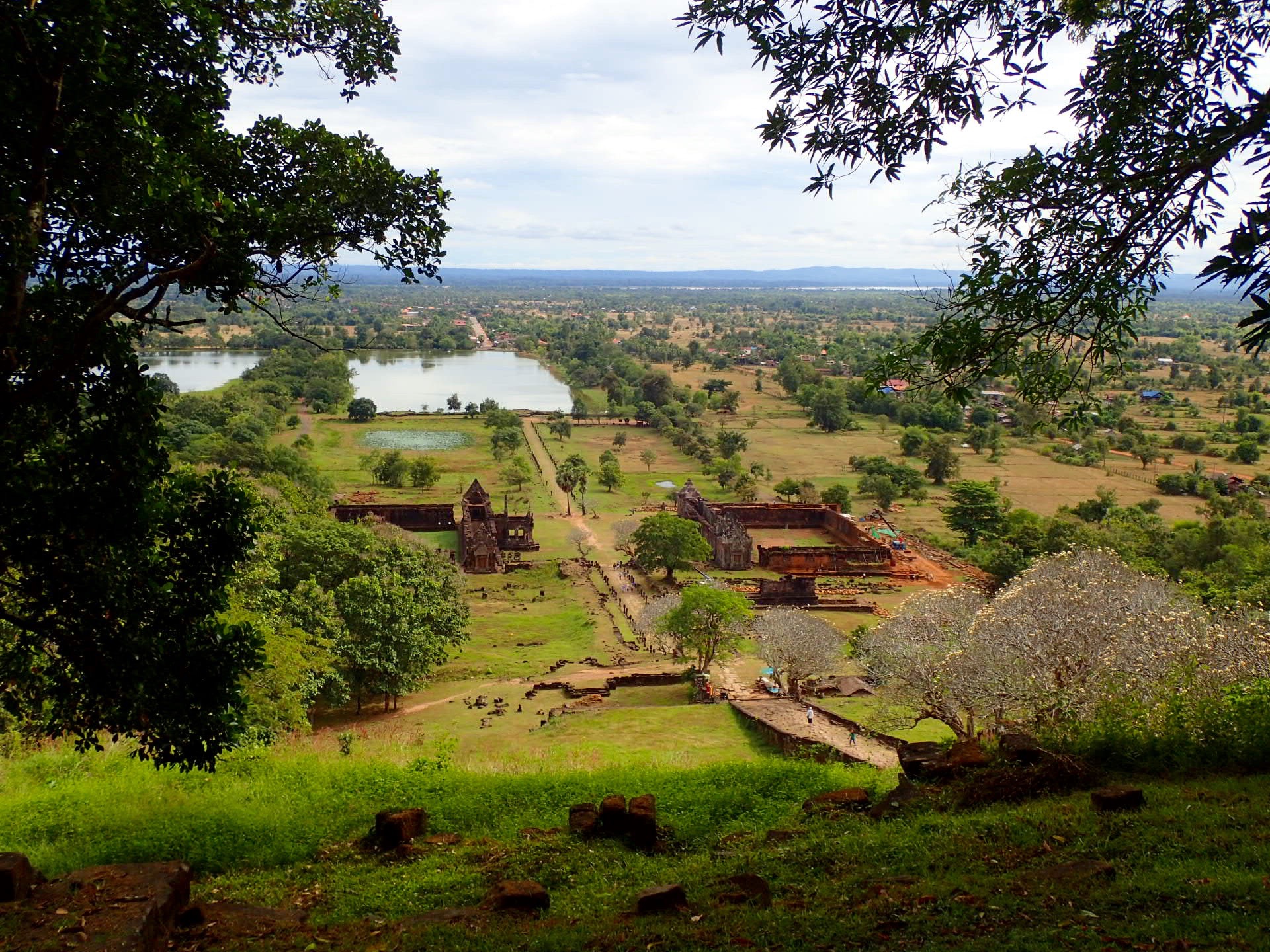 Ce temple hindou, est inscrit au patrimoine mondial de l’UNESCO. Son emplacement est époustouflant, tout juste au pied de la montagne Phou Kao, “la montagne du sein”, surnommée ainsi par le canadien parce que le linga de son sommet (symbole phalique adoré en tant que Shiva) à l’air d’un sein si vous l’observez de loin. Et ce n’est pas une blague (voir notre photo du coucher de soleil).