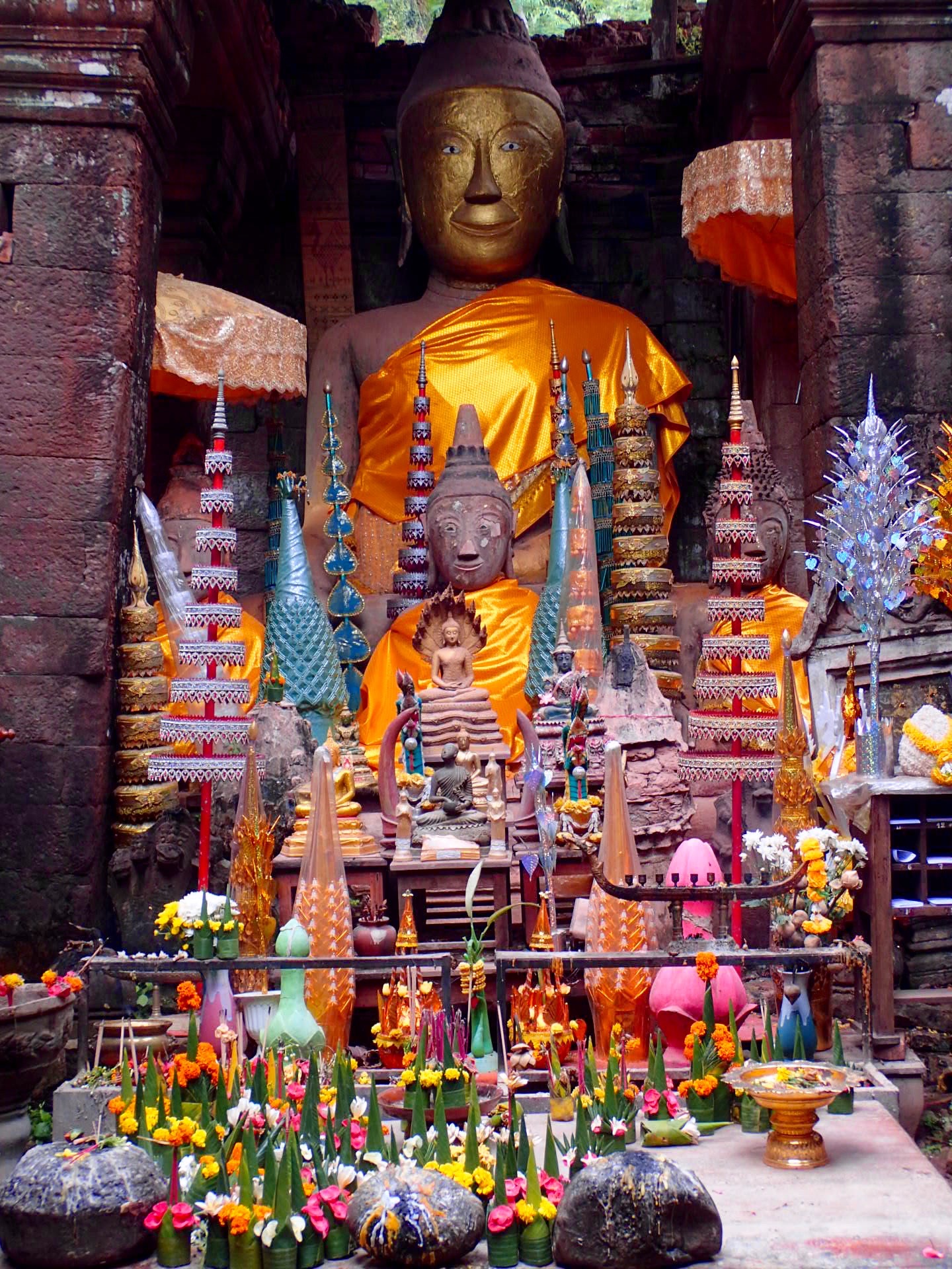 D’ailleurs, la Phou Kao à une connotation virile: ajoutez-y les deux immenses lacs artificiels devant le site (réservoir et eau sacrée), un sanctuaire avec des inscriptions du 5ème siècle, un temple au style d’Angkor construit au 12ème siècle, des gravures sur les roches et vous avez là une bombe de Wat.